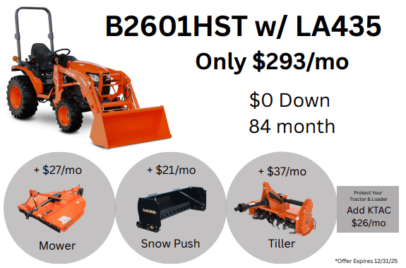 0% APR available or save up to $4,500 on your new Kubota TLB Series!